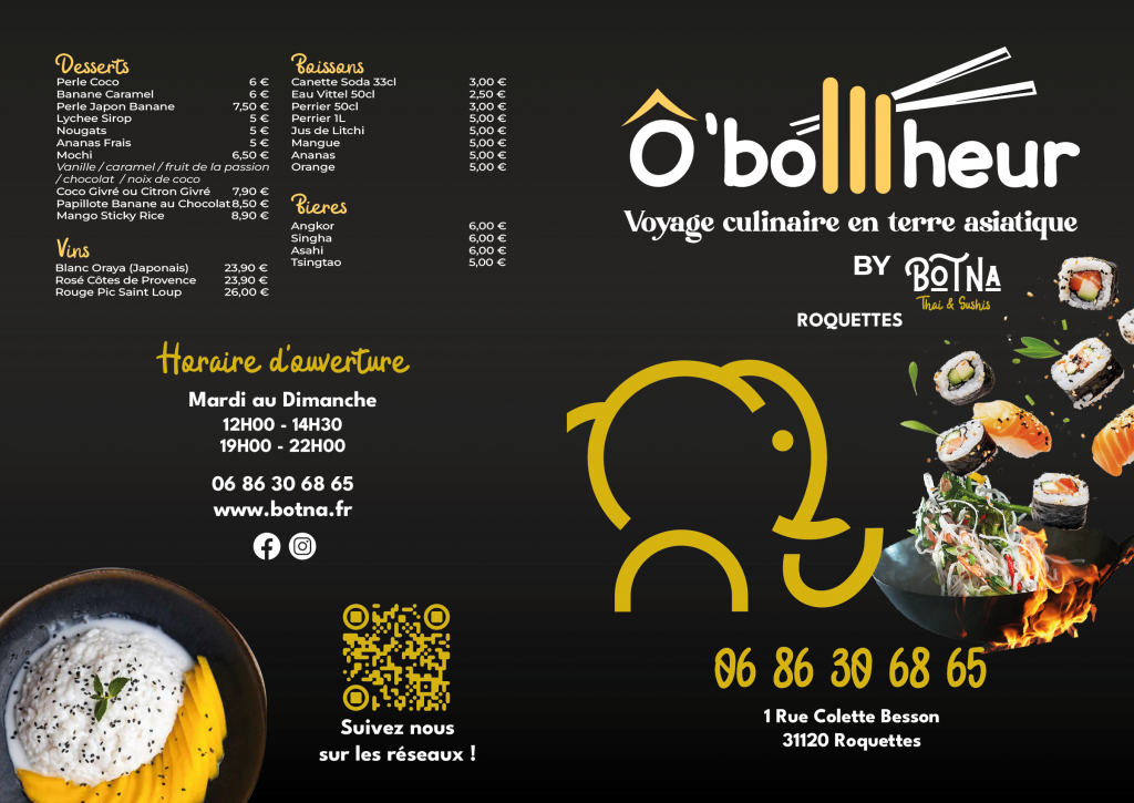 Porté par un accueil chaleureux et un engouement grandissant, BOTNA poursuit son développement. Début 2025, le restaurant s’installe à Beauzelle pour continuer à faire voyager les papilles. Toujours fidèle à son identité, le lieu mêle avec élégance les parfums envoûtants de la cuisine thaïlandaise à la finesse des sushis japonais, dans un cadre moderne où tradition et créativité se rejoignent naturellement.